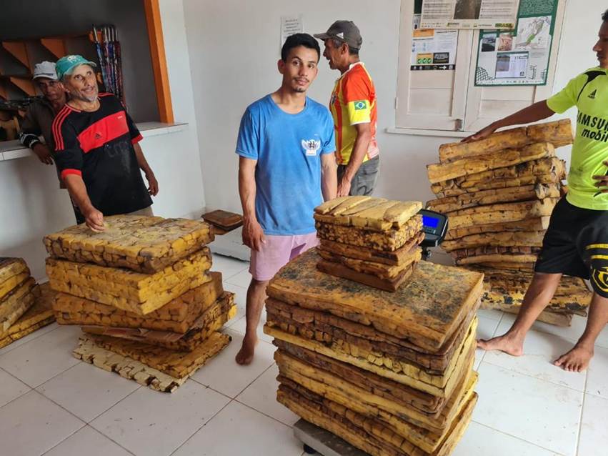 Nesta etapa, o esforço conjunto resultou no escoamento de 43 toneladas de borracha prensada. A relevância econômica dessa cadeia é comprovada pelos resultados da última safra, que gerou renda direta para cerca de 200 famílias no território.