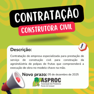 A Associação dos Produtores Rurais de Carauari – ASPROC está com processo seletivo aberto para contratação de Analista de Recursos Humanos (RH), visando o fortalecimento da gestão de pessoas, da cultura organizacional e da conformidade legal e institucional da associação.